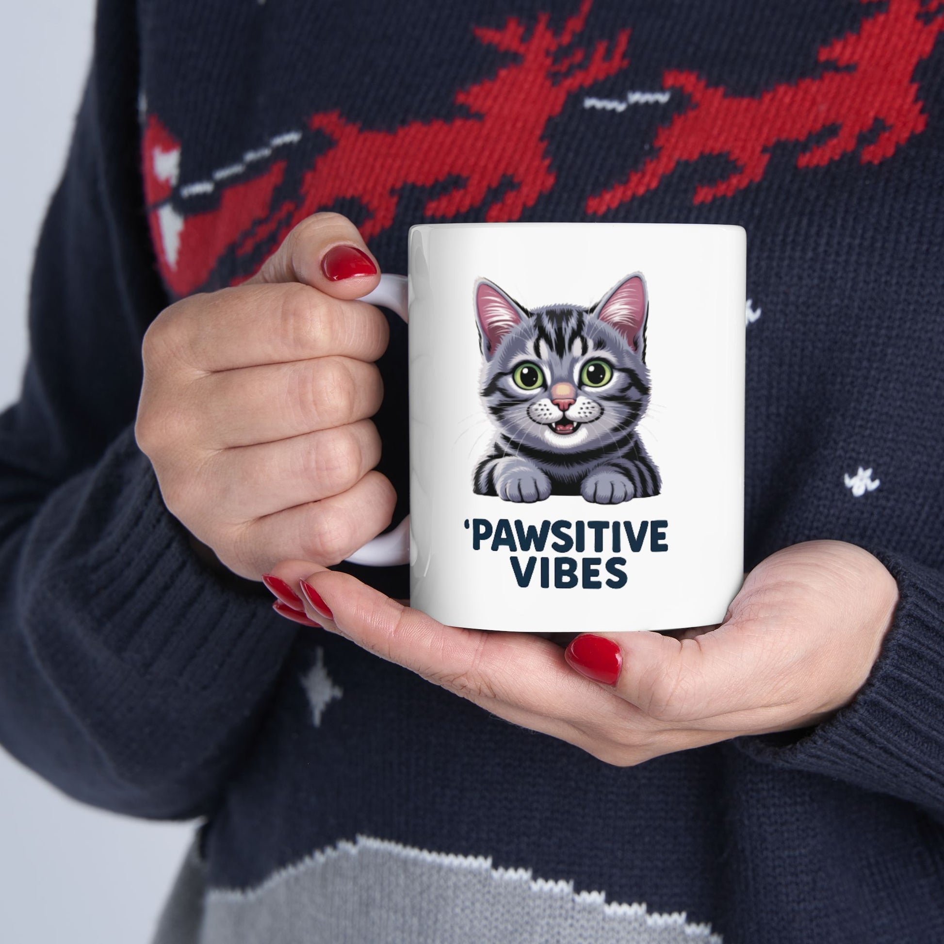 The Grey Cat Mug — cozy, cute, and perfect for cat lovers to brighten their morning routine. A great gift for birthdays, holidays, or any cat fan’s special day.